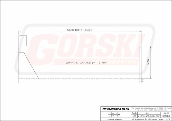 GORSKI 3 AXLE DOG TIPPING TRAILER 45T SPEC BODY ONLY HARDOX NEW - QT-DT3-45T-BODYONLY