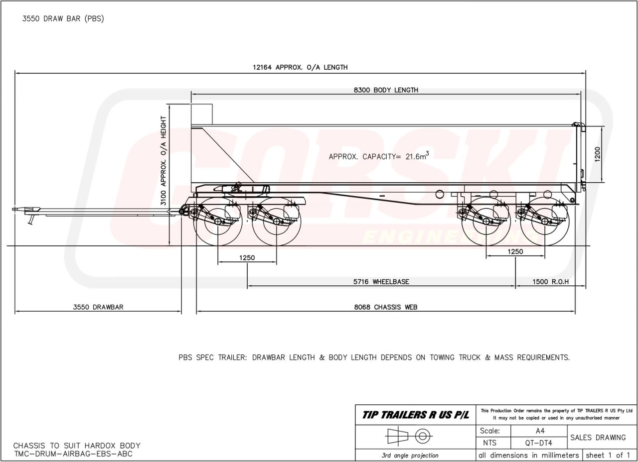 Note: This 4 Axle Dog Tipping Trailer is sold as a New item.