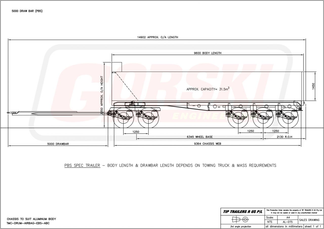 GORSKI 5 AXLE DOG TIPPING TRAILER ALUMINIUM NEW - AL-DT5