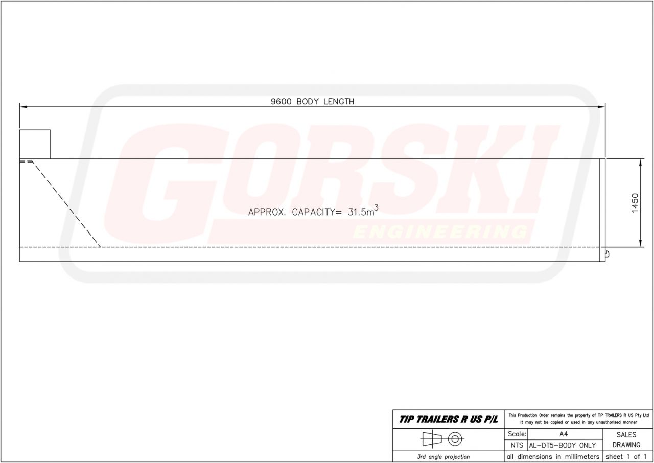 GORSKI 5 AXLE DOG TIPPING TRAILER BODY ONLY ALUMINIUM NEW - AL-DT5-BODYONLY